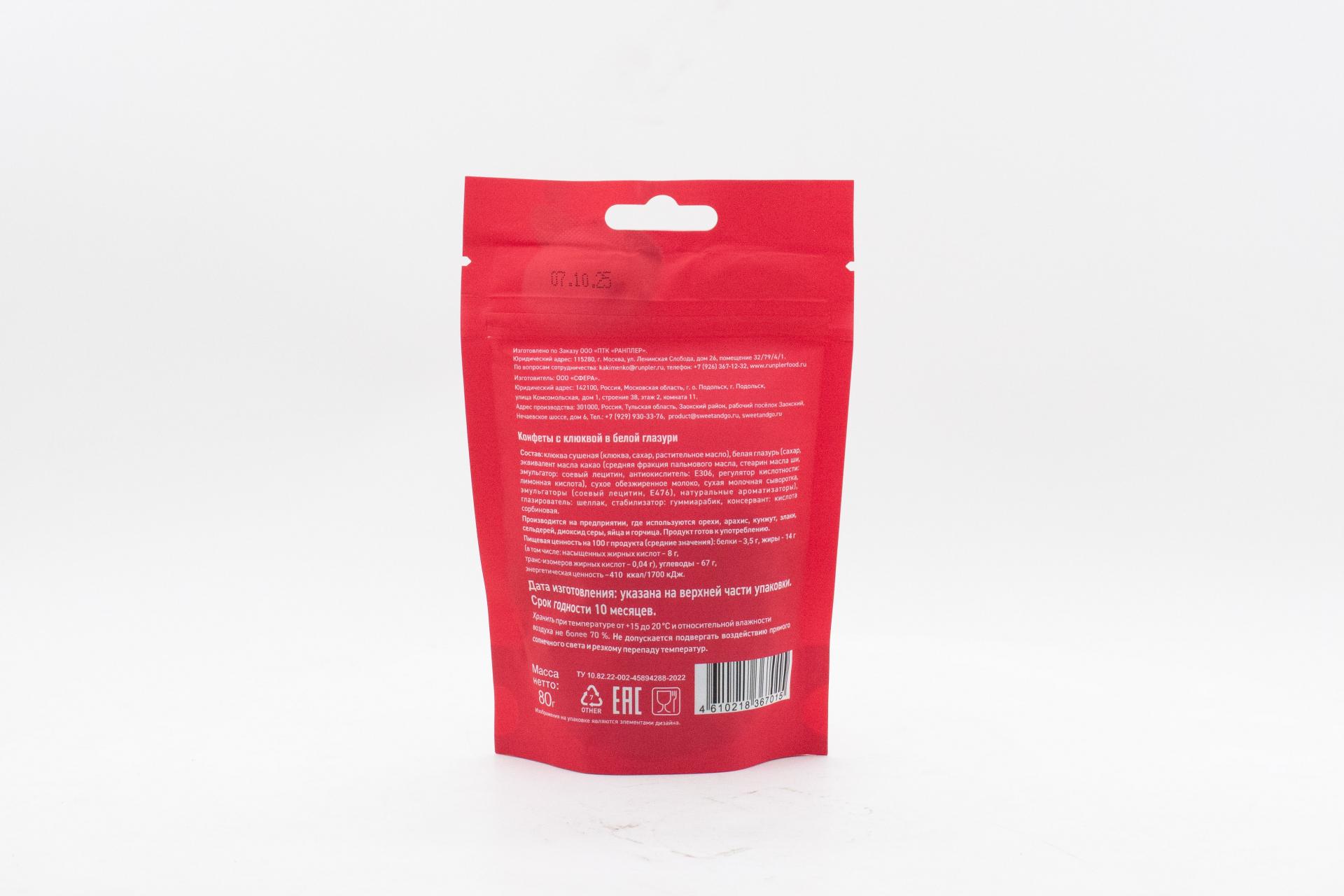 Таблица стоимости «Конфеты Sweet&Go с клюквой в белой глазури (Россия) 80г» от суммы в корзине
